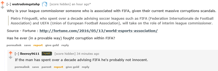And then there’s this gem from the Reddit thread, where the WESA founders AMA hasn’t started yet: